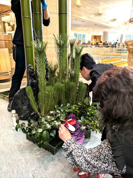 小原流研究院講師 松井博士先生のご指導の元、神戸ポートピアホテル 舞台・ロビーにお正月花を、正面玄関、地下玄関、ポートライナー側入口に門松を制作致しました。