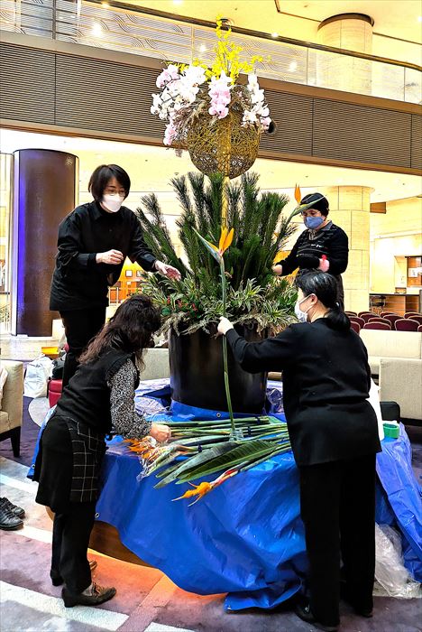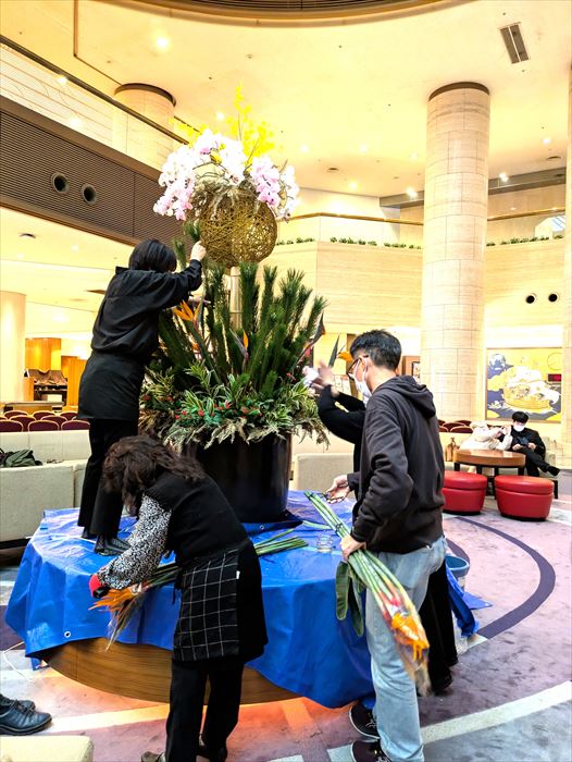 神戸ポートピアホテル2026年正月花挿花 芯組み・制作